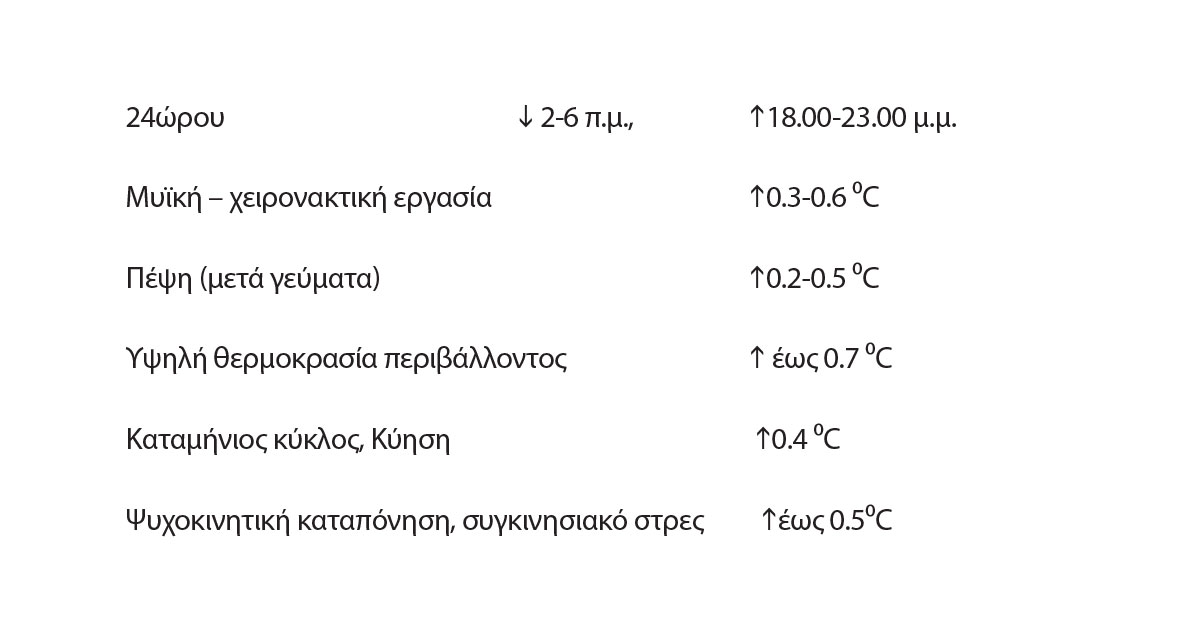 Στα υγιή φυσιολογικά άτομα η θερμοκρασία παραμένει σταθερή, περί τους 37⁰C, με μικρές όπως προαναφέρθηκε διακυμάνσεις στη διάρκεια της ημέρας. Η σταθερότητα αυτή της θερμοκρασίας του ανθρώπου εξασφαλίζεται και ρυθμίζεται από ένα ειδικό θερμορυθμιστικό μηχανισμό από δύο θερμορυθμιστικά κέντρα του κεντρικού νευρικού συστήματος, τα οποία βρίσκονται στον εγκέφαλο και συγκεκριμένα στον πρόσθιο υποθάλαμο. Ο μηχανισμός αυτός εξασφαλίζει την ισορροπία μεταξύ της παραγόμενης και της αποβαλλομένης από τον οργανισμό θερμότητας.